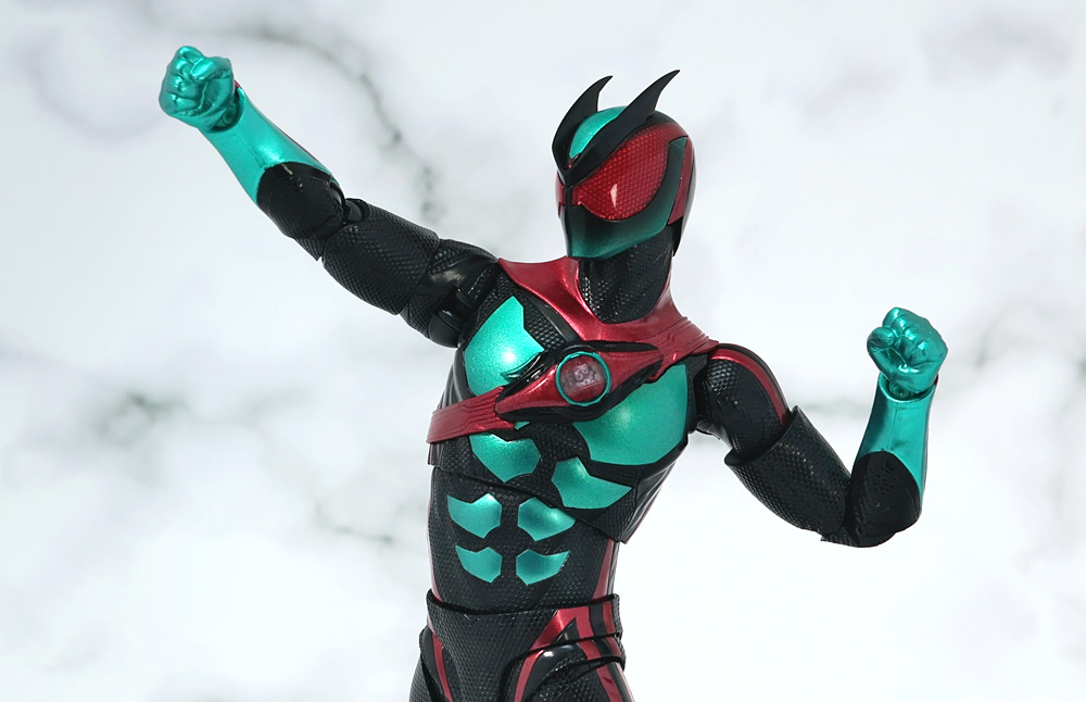 劇中同様、筋肉質なボディラインの一体感があるプロポーションで造形。