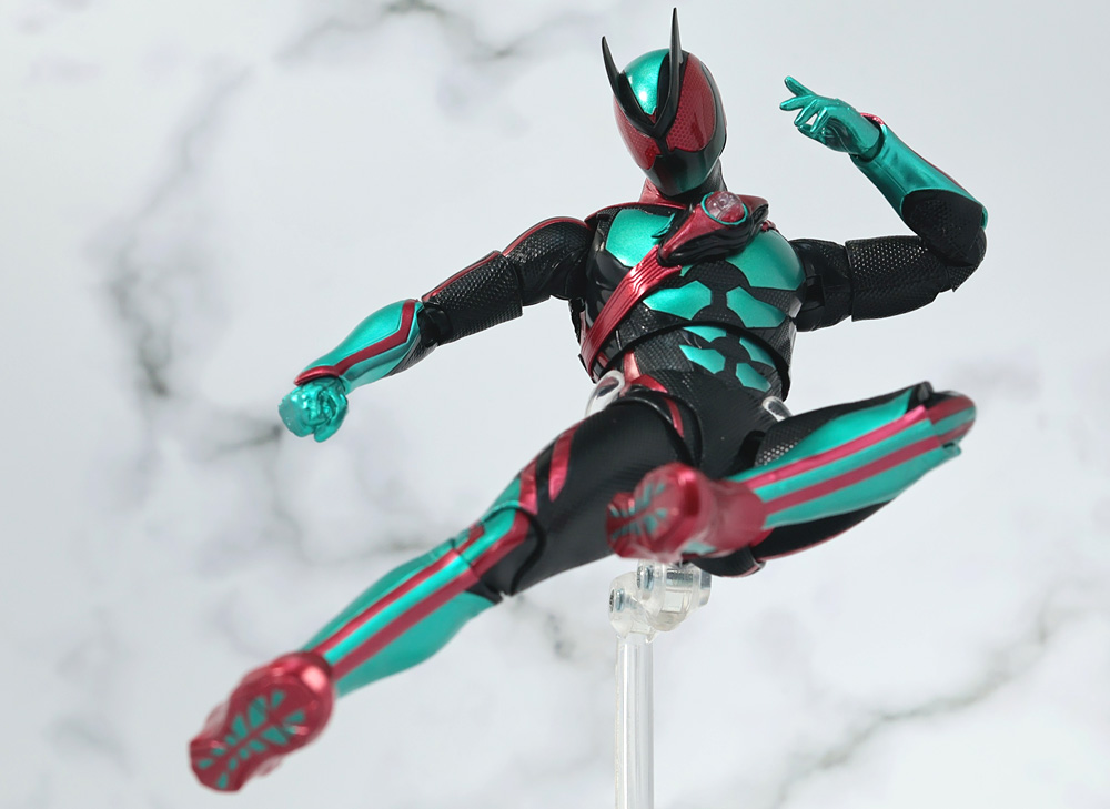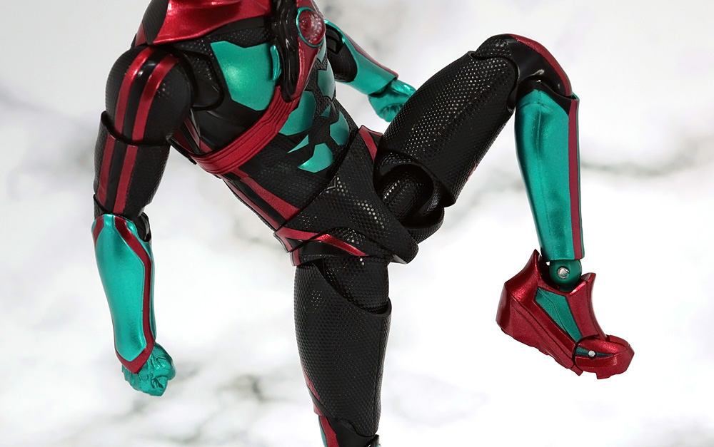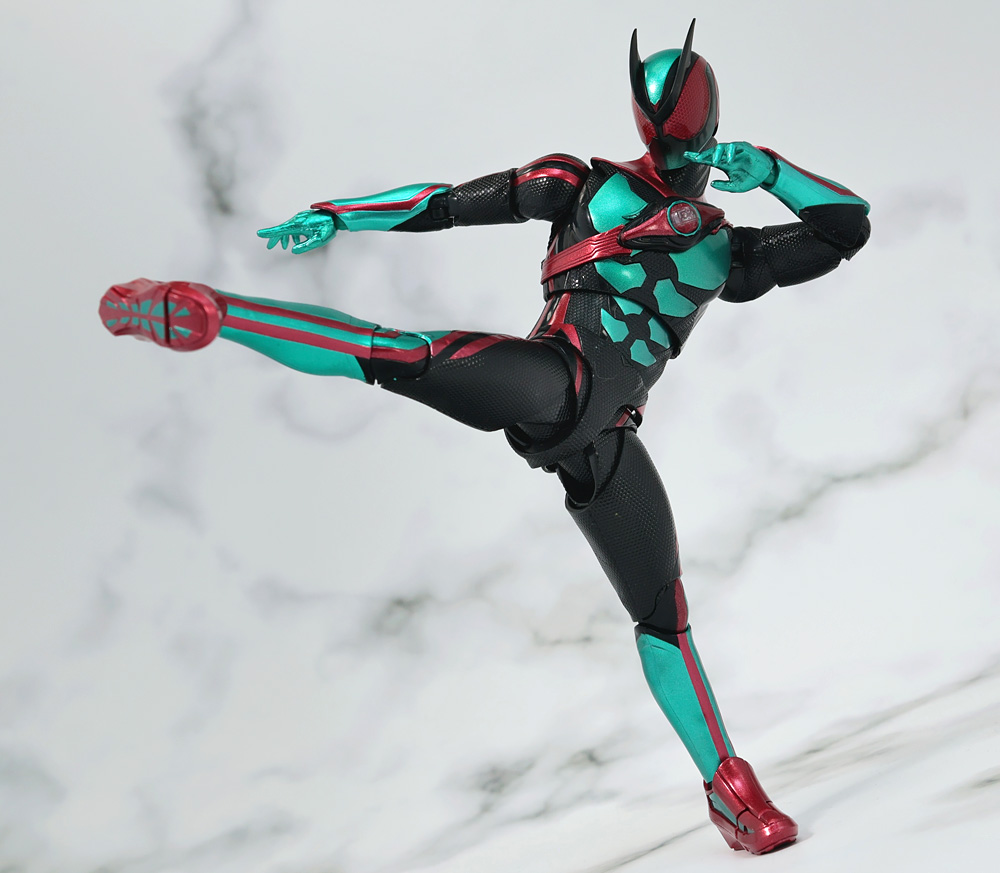 ベルトが胸部にあることで脚部の可動域がこれまでのライダーより可動域が広くなっている感じ。