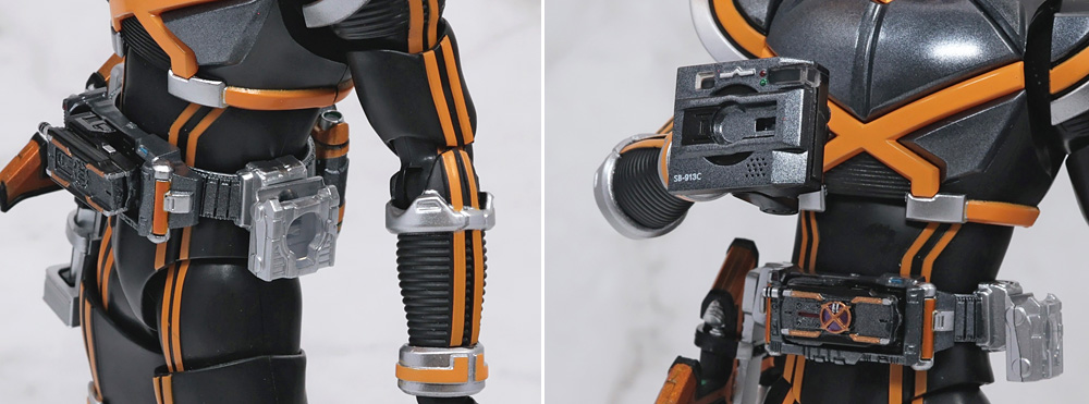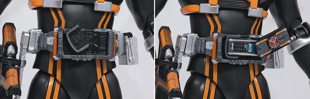 腰に装着するホルダーはカイザショットを抜いたブランク状態のタイプが別途付属し、差し替えて再現。