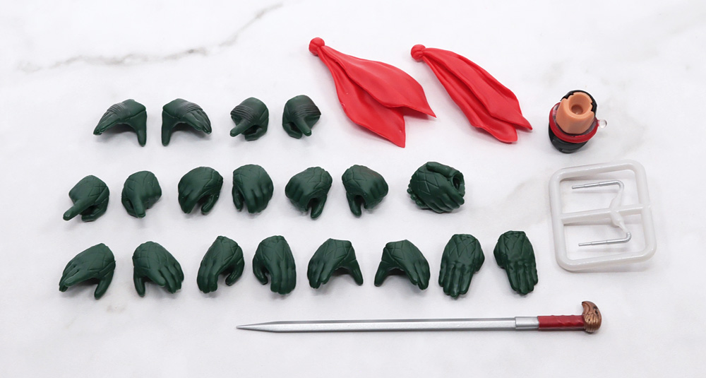 可動。頭部はボール可動。可動軸が細めでマスクの肉厚も薄いので可動域が広めに。