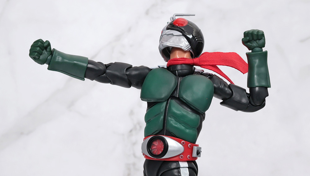 劇場版「仮面ライダー対ショッカー」登場時をイメージしているとのことで全身新規で造形されています。
