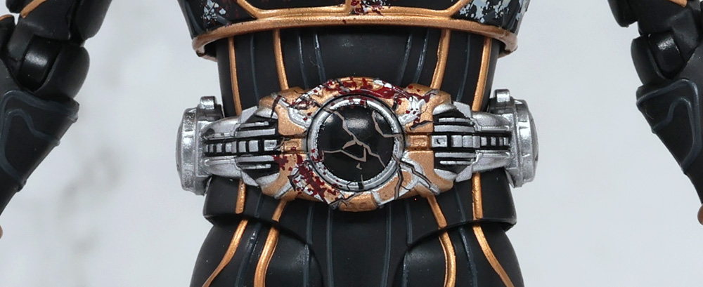 中央からヒビが入った表現が施されています。ダメージ痕はモールド処理なのでベルトは新規造形ということに。
