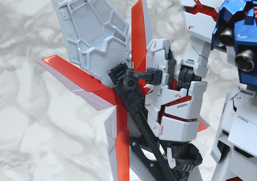 全身に露出した赤色のサイコフレームはクリアーパーツ。
