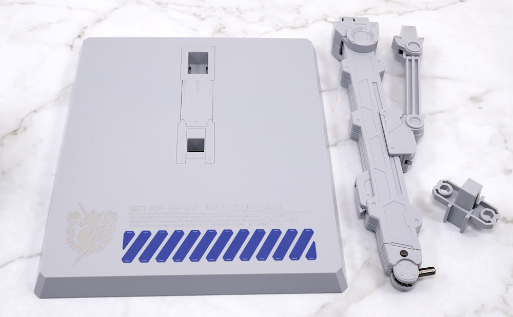 台座にディスプレイ。フィンファンネル用ディスプレイジョイントにスタンドの接続穴が設けられています。