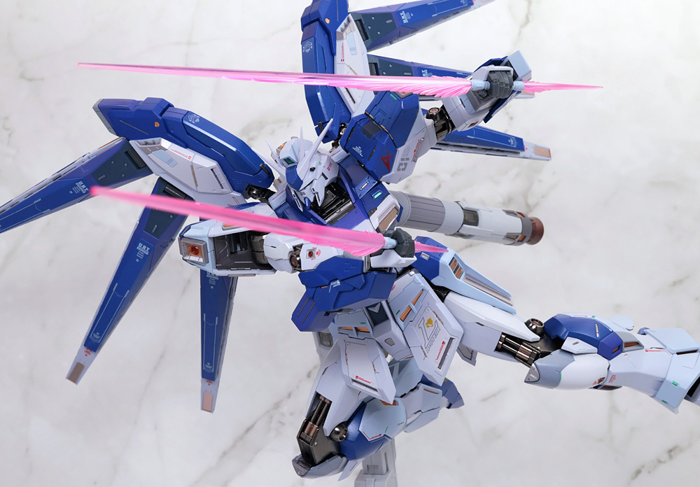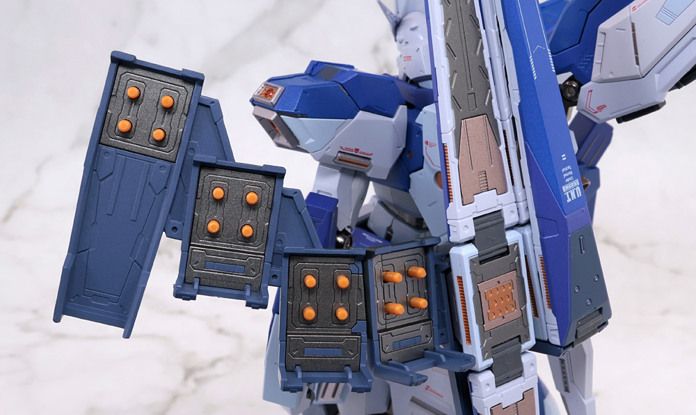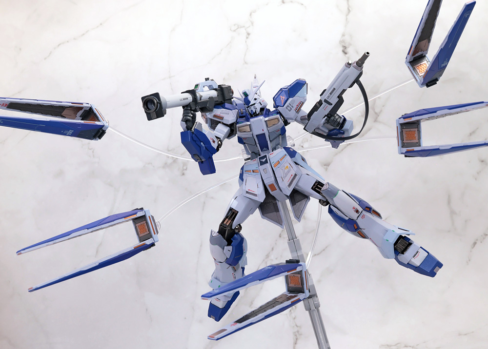 Hi-νガンダム METAL BUILD EXPO版では新規付属のファンネルジョイントを使用して