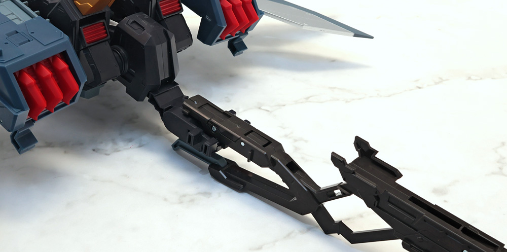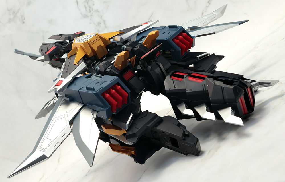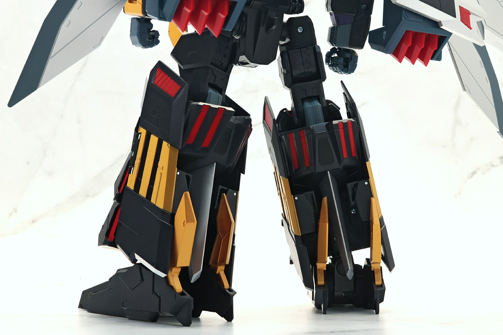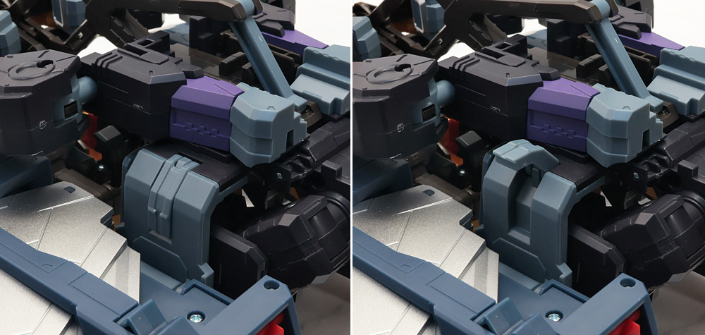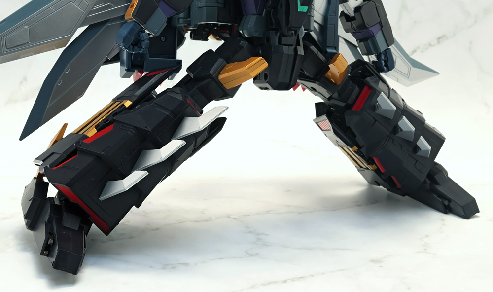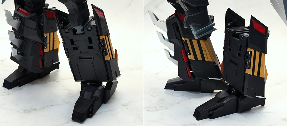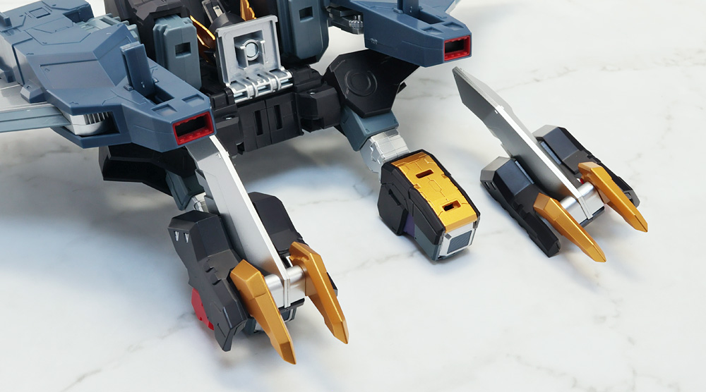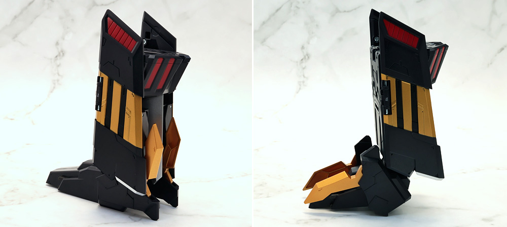 脚部を可動させる際、差し替え変形のパーツが組み合わさったヒザとスネパーツが構造上パーツがバラけやすい感じ。