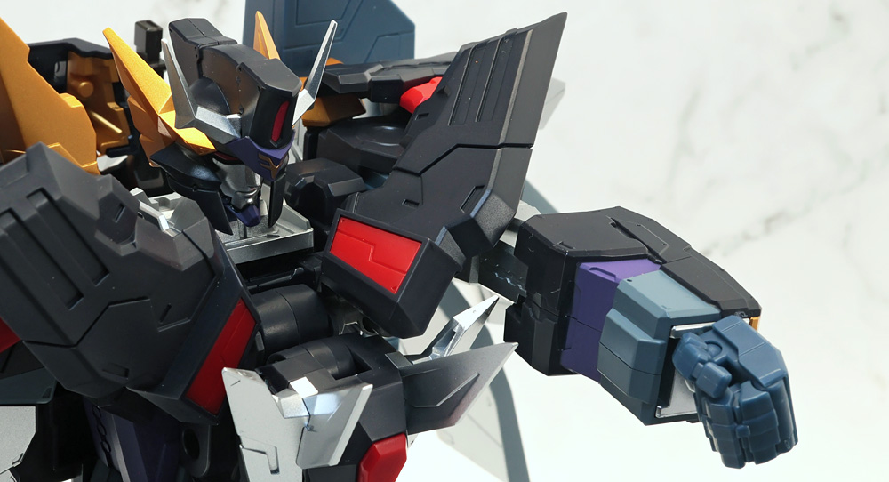 アルティメットダンクーガのスカートになる胸部のアーマーは多重関節でスイングするため腕部の可動の妨げになりません。