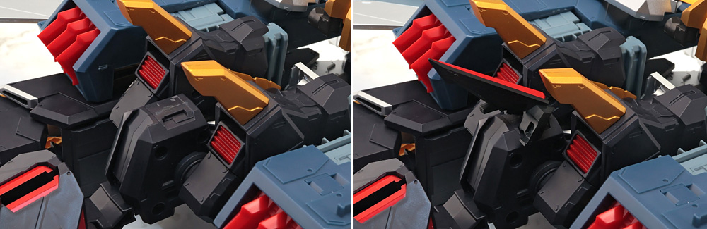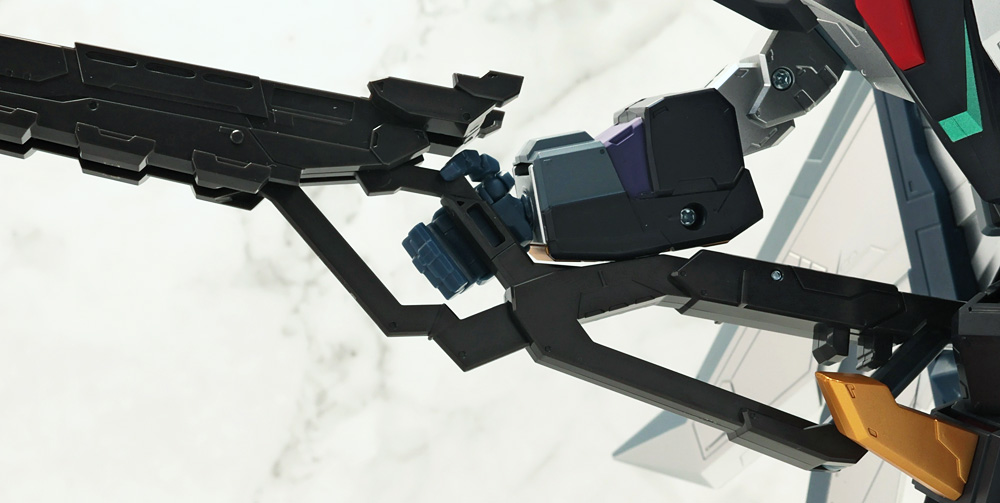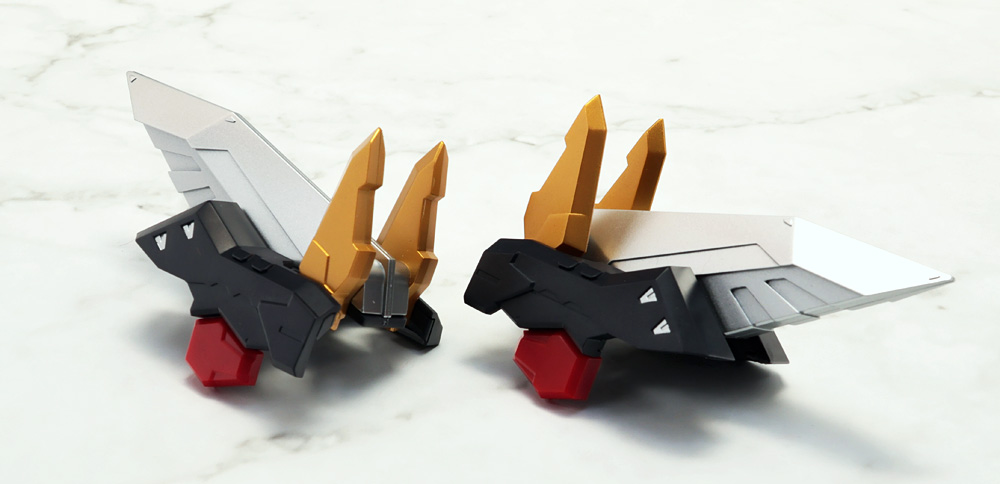 背面のウイングブロックは背中から伸びたヒンジプレートで接続。