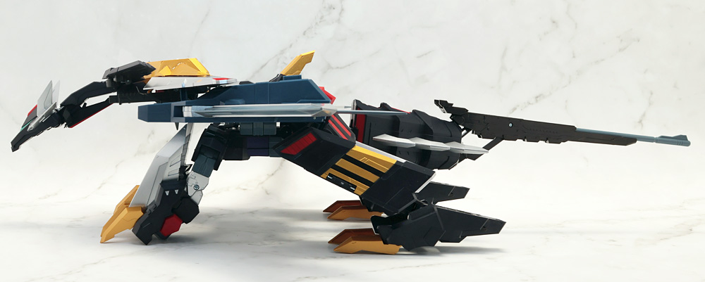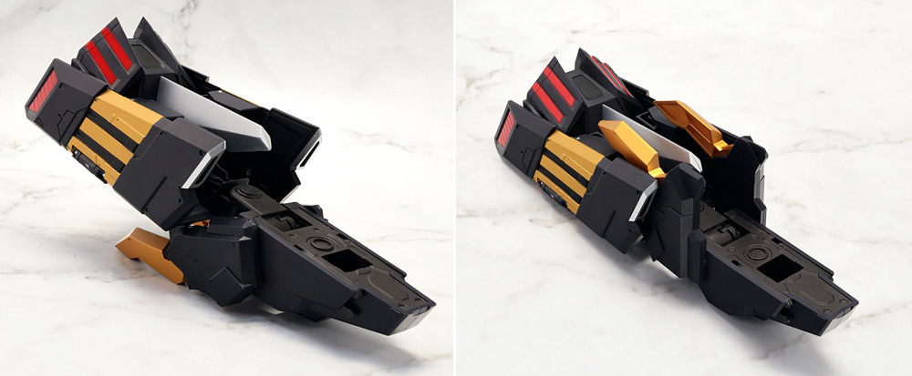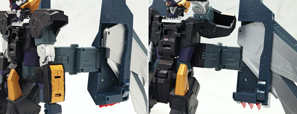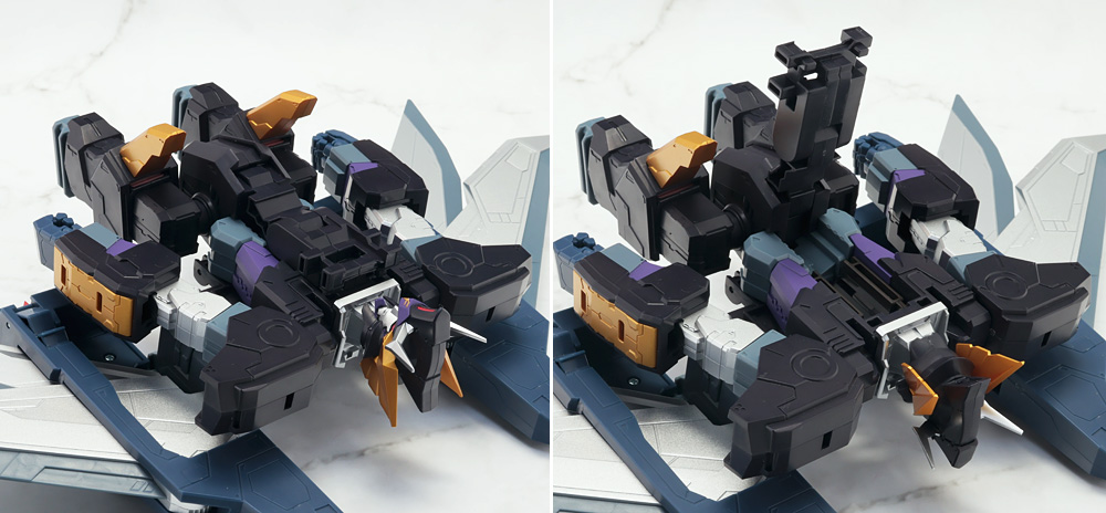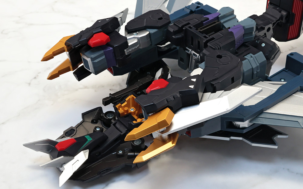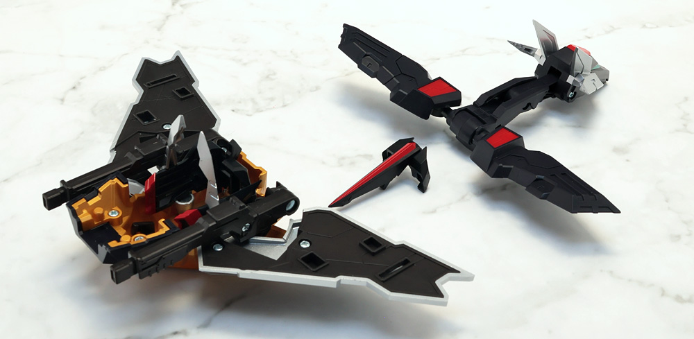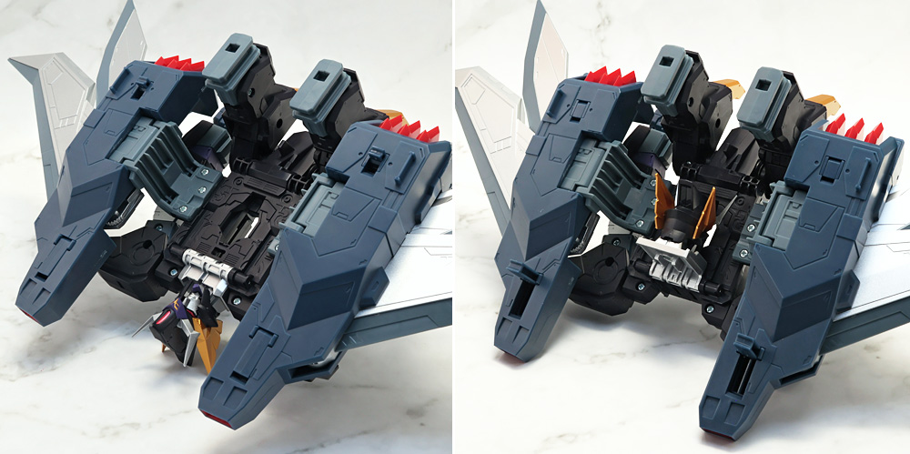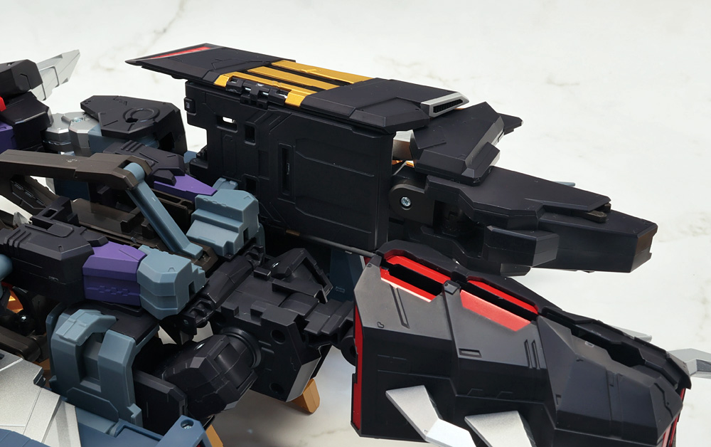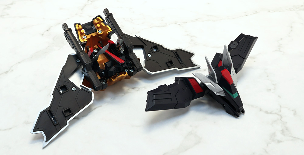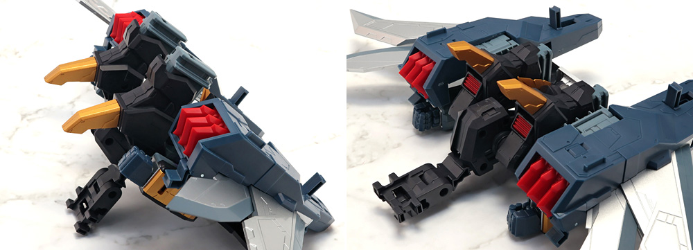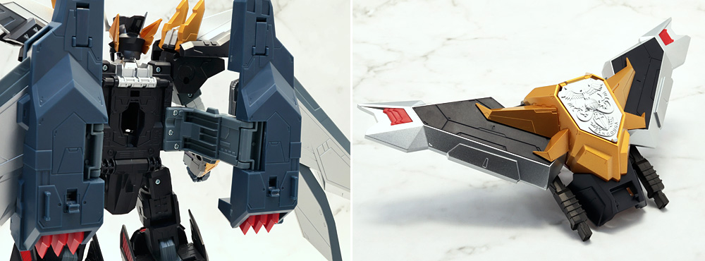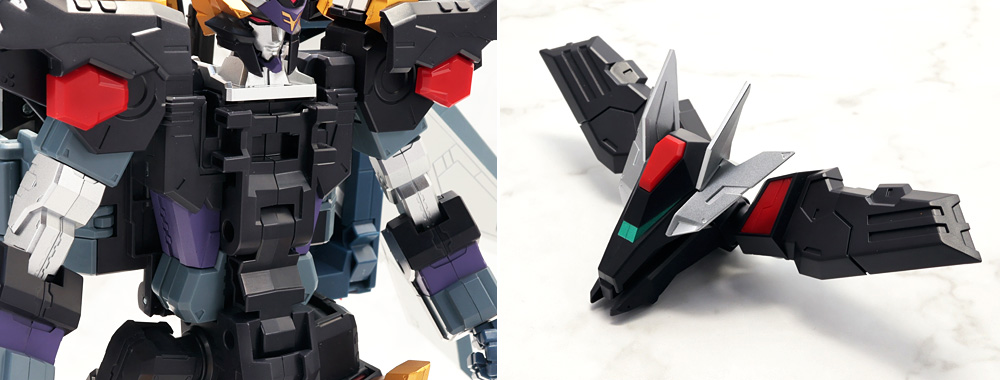 変形・合体時にブロックごとに分割する機構のため、背面のウイングの空間など一部でスカスカしたところも。