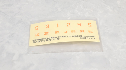 MSV画稿で腰や腕に装飾されていた機体ナンバーとZのマークは自分で貼る仕様。