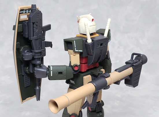 シールド裏にはビームライフル。腰裏にはバズーカをジョイントを介して接続可能。