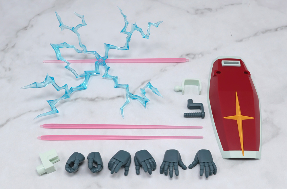 ビームライフルがなく、そもそもライフルに対応するハンドパーツすらないので他の商品からの流用も厳しめ。
