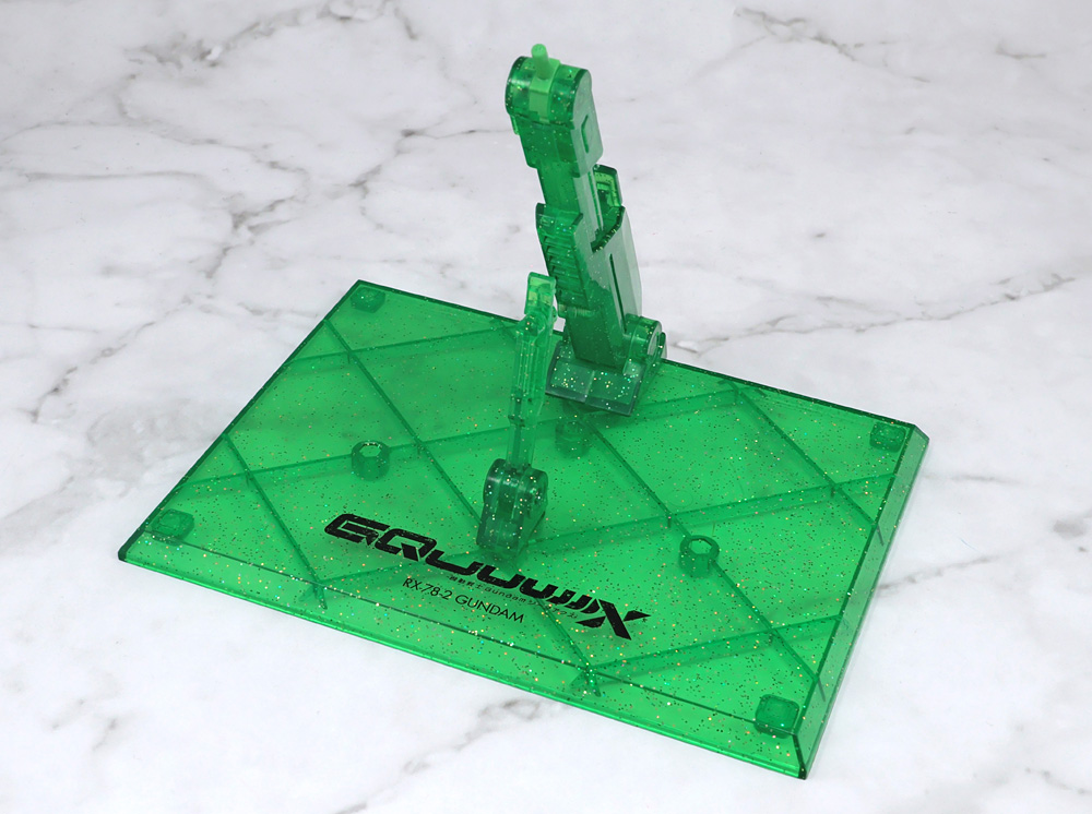 台座カラーはサイコフレーム調の緑色。成型色にラメが織り交ぜられているのが特徴。