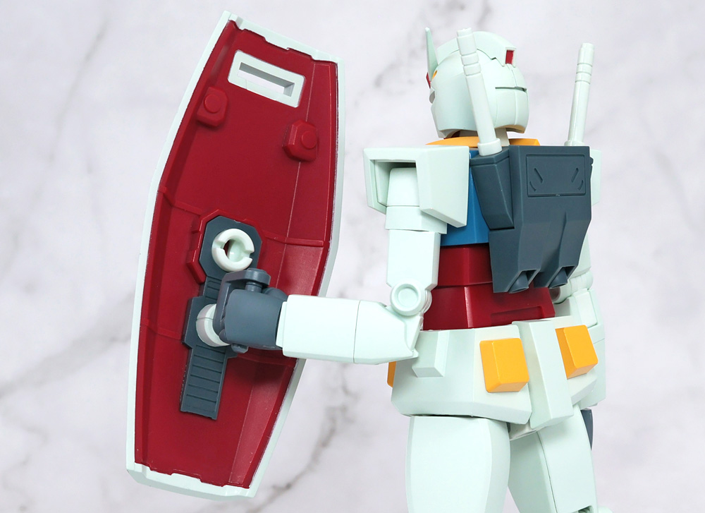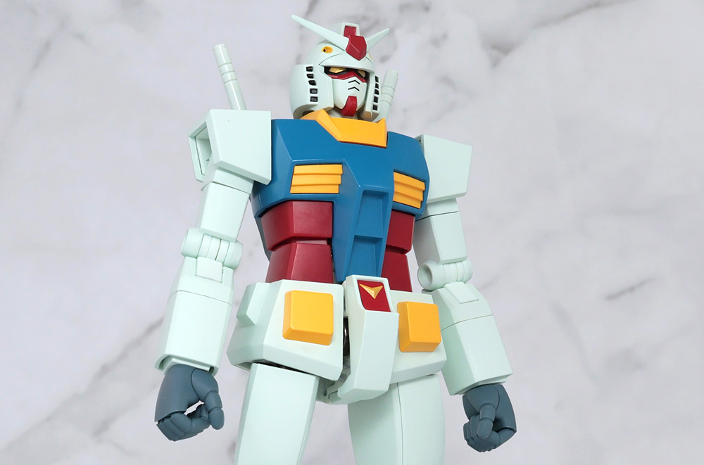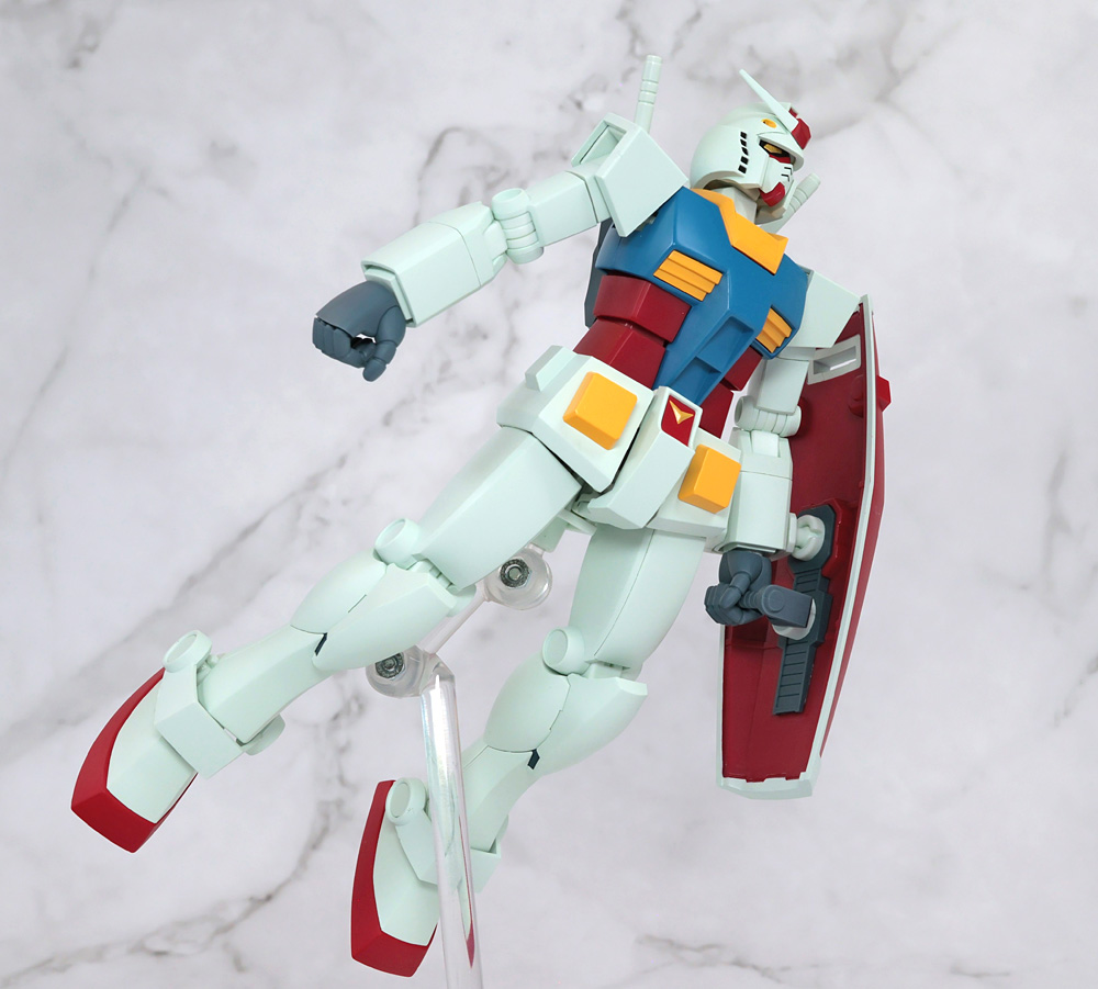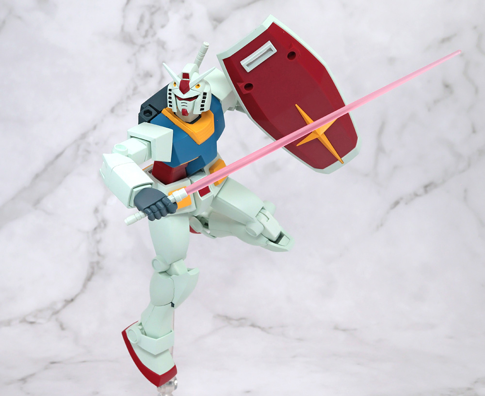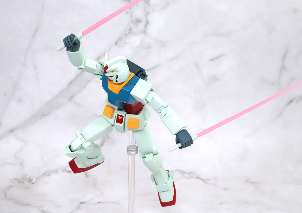 可動構造に特徴があるフィギュアで1stガンダムの作画に準じたアクションを行うために