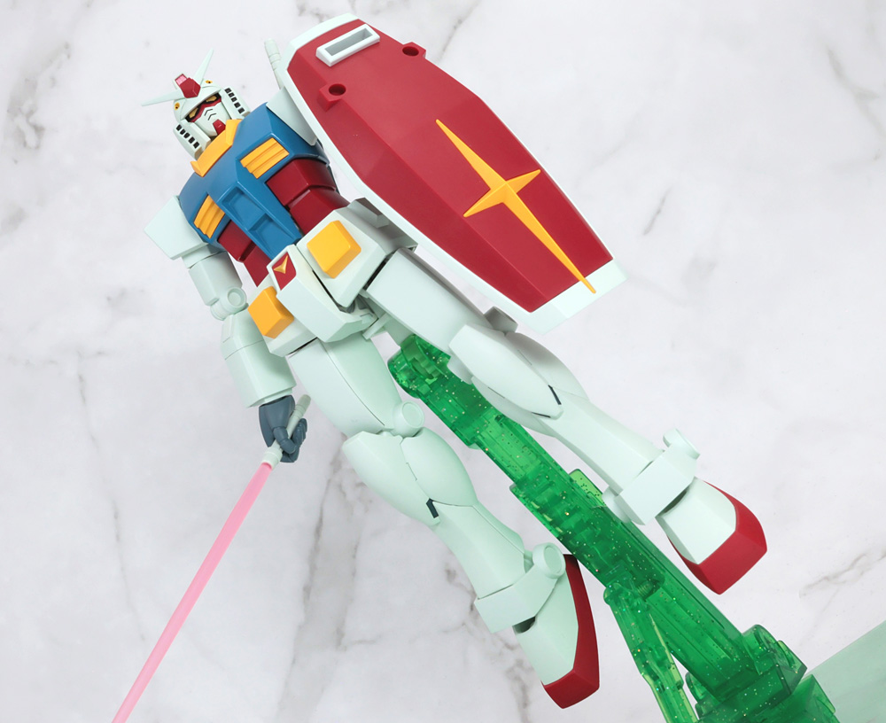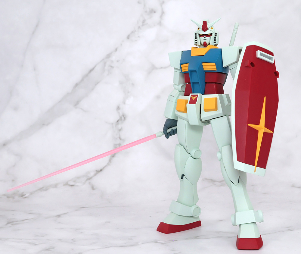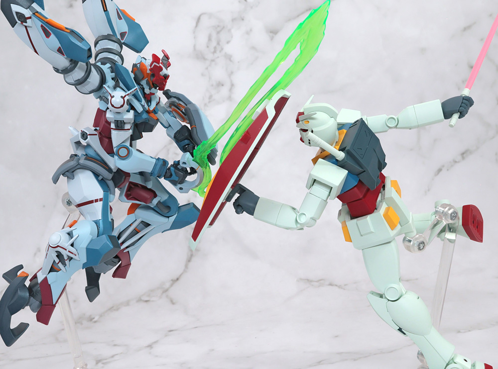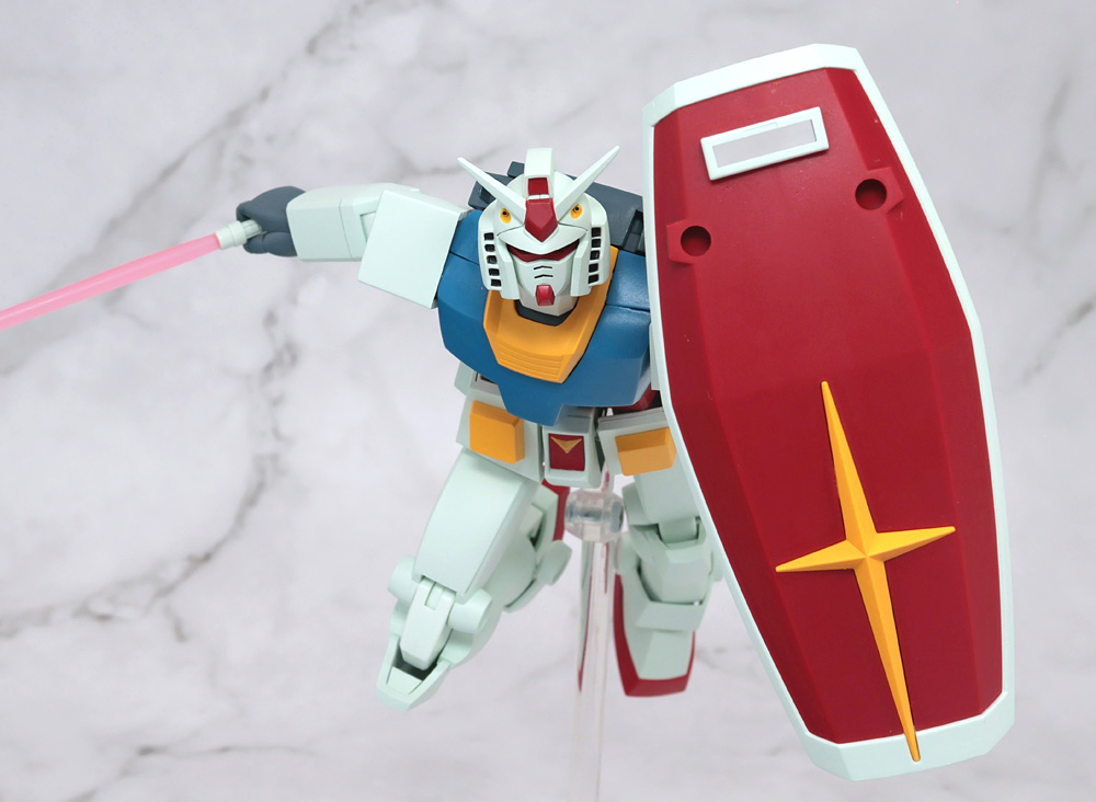 可動構造に特徴があるフィギュアで1stガンダムの作画に準じたアクションを行うために