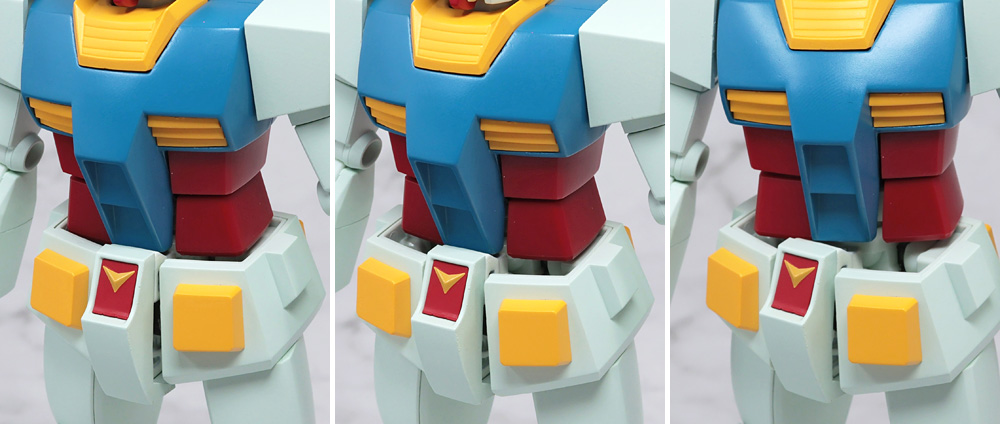ブロックごと前にスライドさせることで隙間が生まれ、胴体を30度ほどロール可動ができるように。