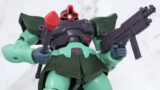 ヒジ関節は合金パーツで2重関節。 胴体はコクピットブロックのあたりで分割され前屈可動。