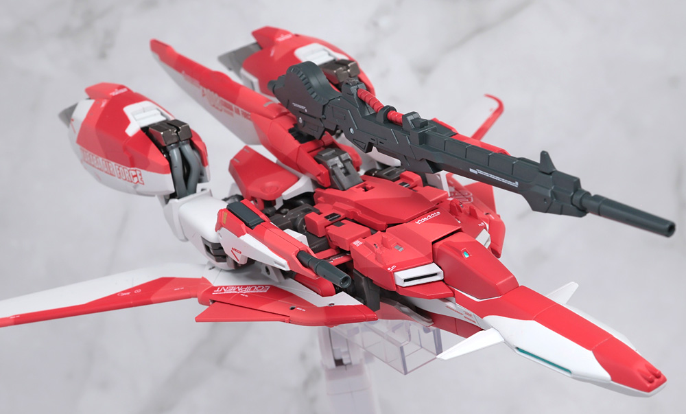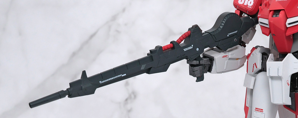 多重関節とボール接続で砲身を正面に向けられます。側面にはビーム・サーベルのグリップが収納。