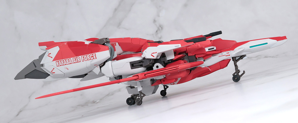 テールスタビレーターや脚部側面にはカラバエアフォースの文字がプリント。
