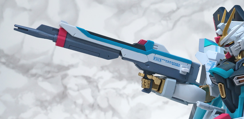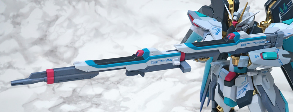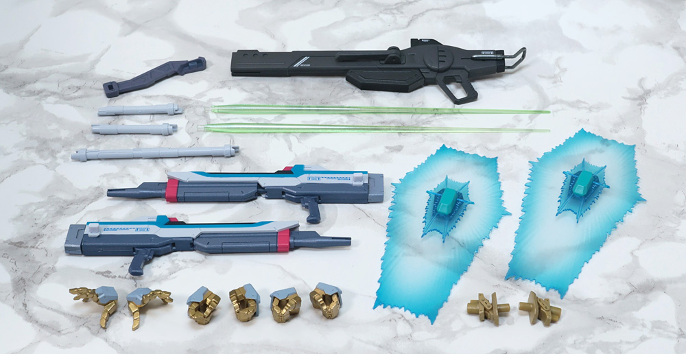 ギミックが共通なので左右2挺のビームライフルを前後に連結するギミックも。