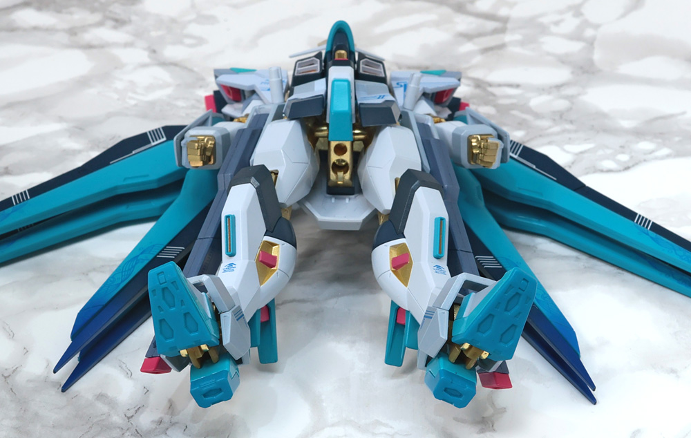 肩アーマーとウイングのドラグーンの先端の色はグラデーション処理になっています。
