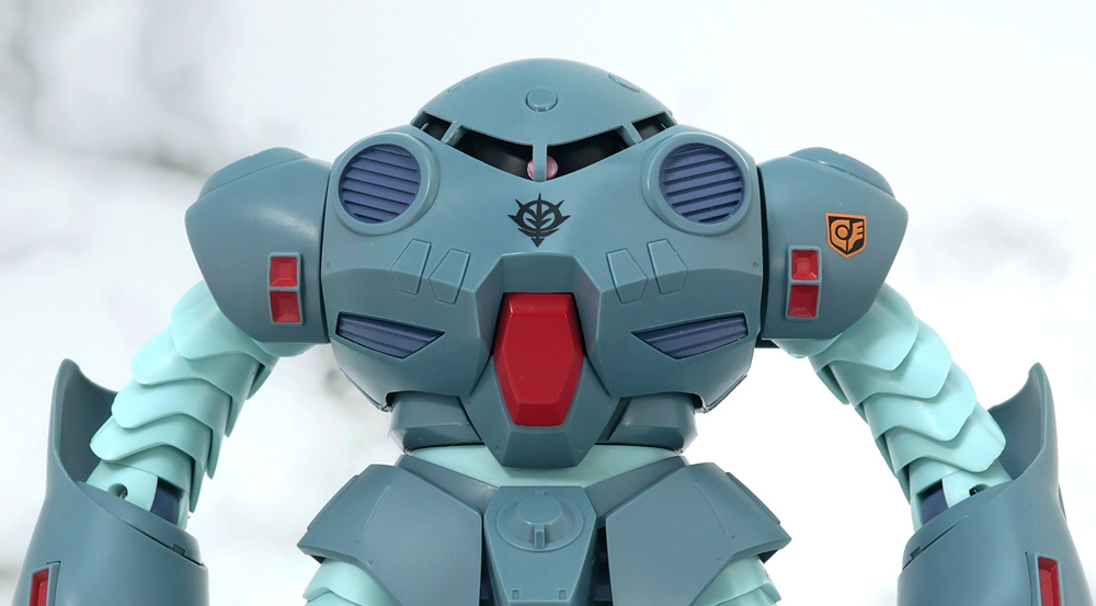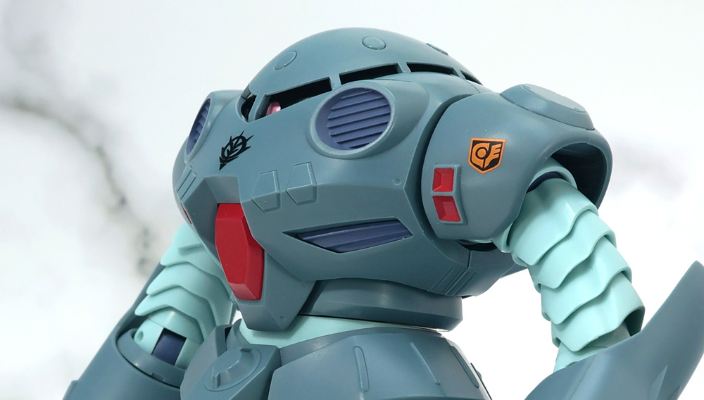 ジオンの徽章や左肩のサイクロプス隊のマーキングはタンポ印刷で再現。