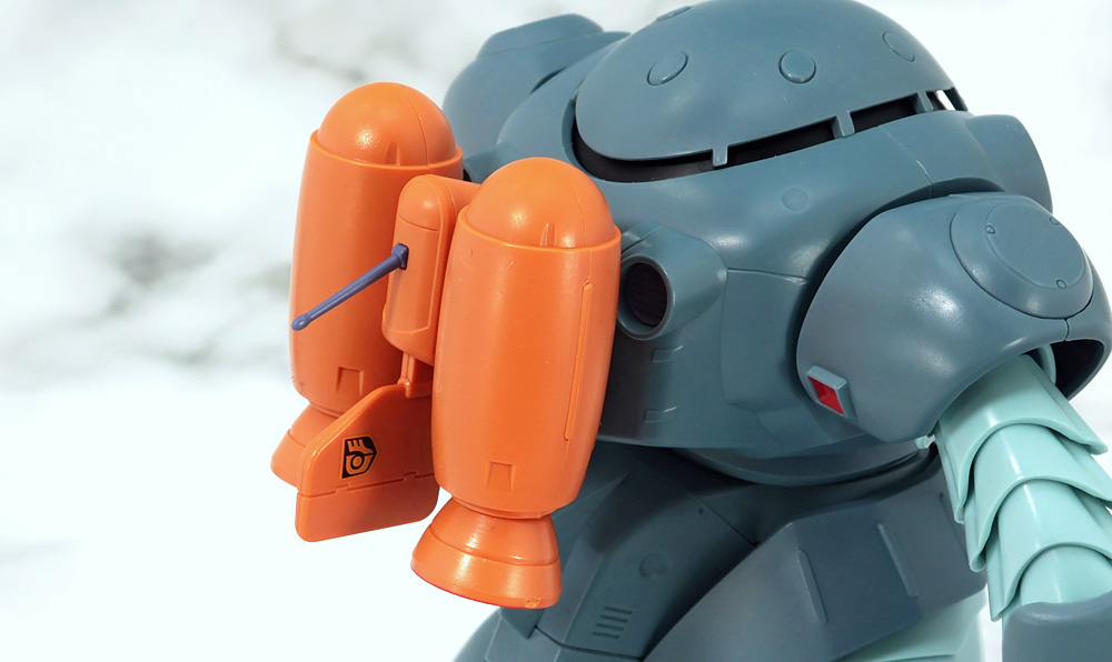 ズゴックの背中に軸接続。ノズルはボール可動。中央のアンテナは予備パーツも付属。