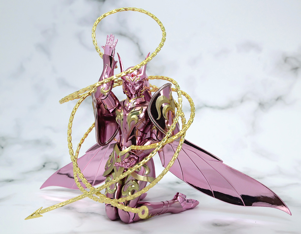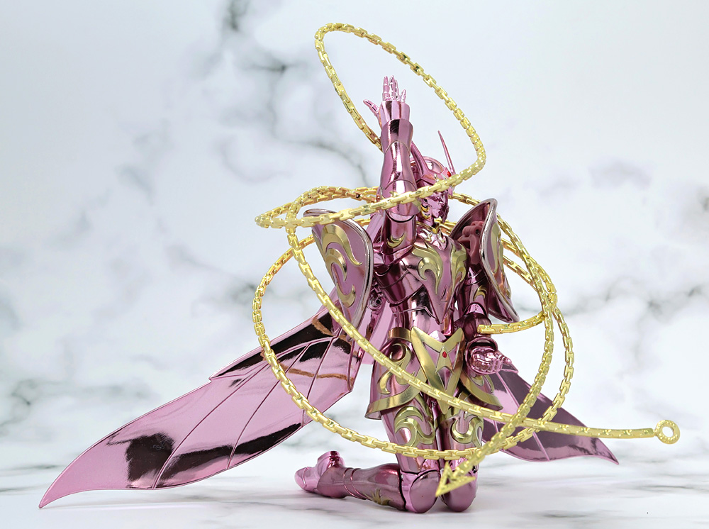 29,700円(税込)と高くなりすぎなフィギュアなので、チェーンを腕に巻き付けてメッキが剝がれるのが怖くなってきた。