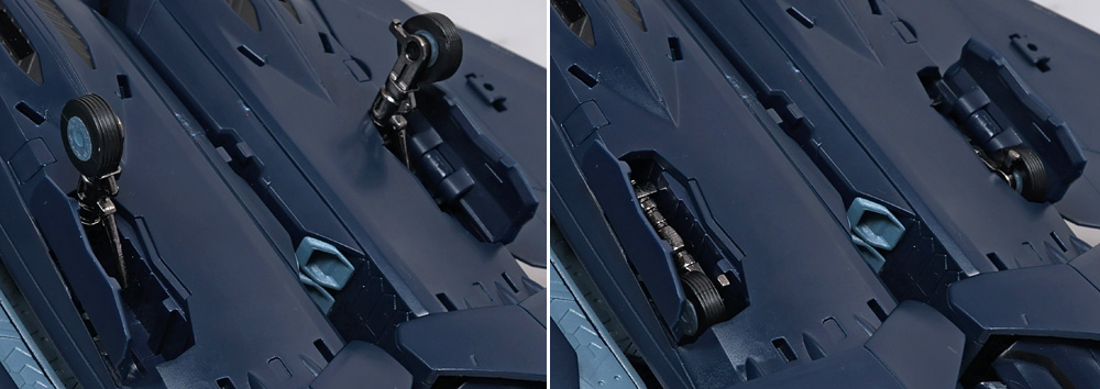 前輪はカバーを開き、収納された車輪・カタパルトフックを起こし、後方にスライド。