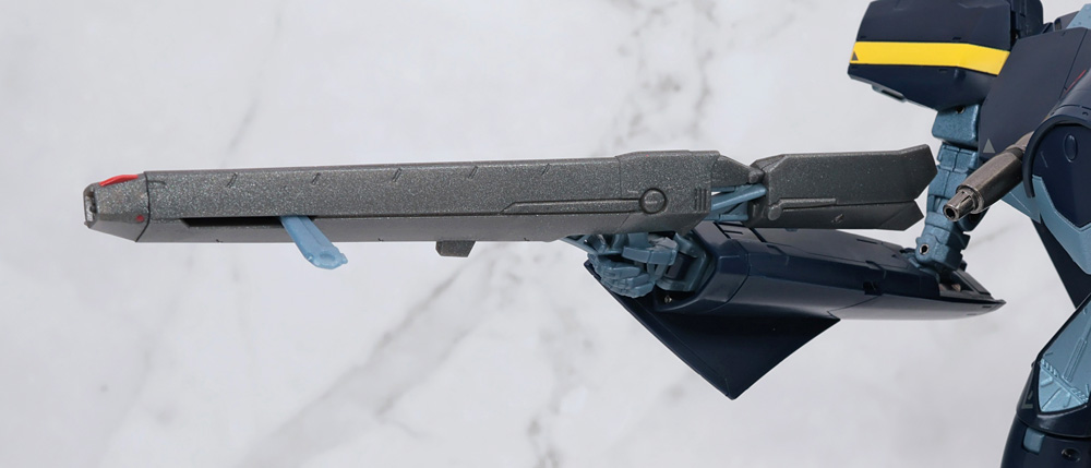 ヒジ関節裏に収納されているレーザー砲を付属の補助棒で外側にスライド。